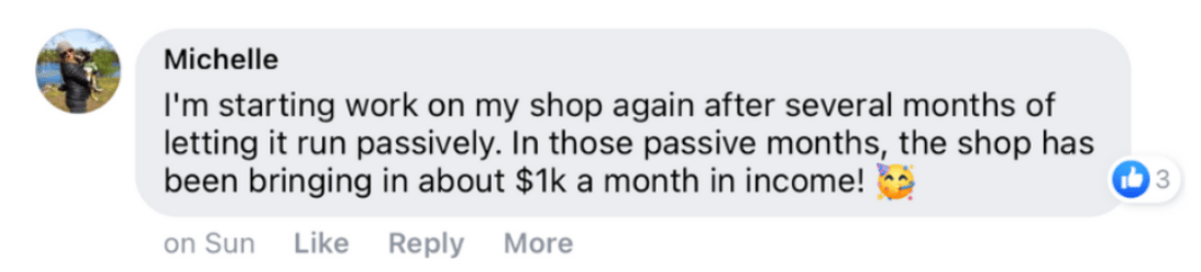 Take Michelle for example who hit her goals of $1,000+ per month in mostly passive income.