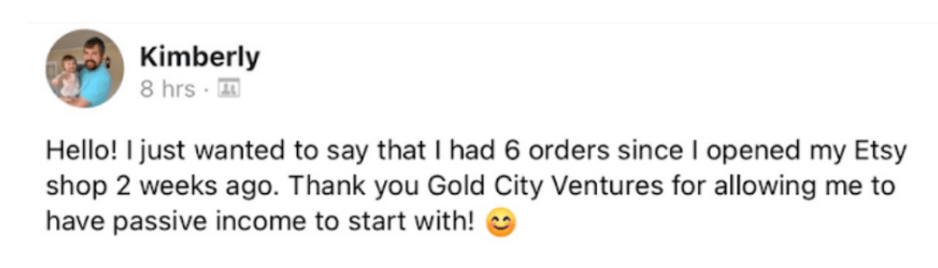 I've also seen their student testimonials, and they're pretty impressive. Like this one from Kimberly, who got 6 sales in her first two weeks.