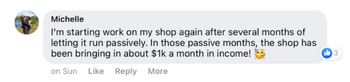 Take Michelle for example who hit her goals of $1k+ per month in mostly passive income.